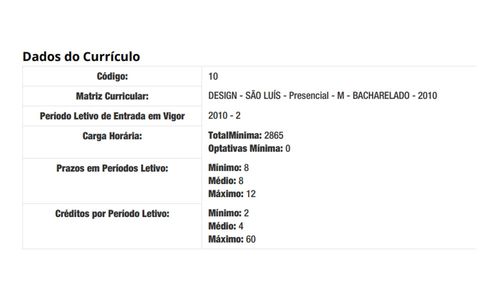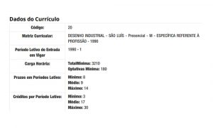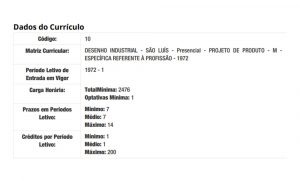 com 3210 horas, distribuídas em 9 períodos, e criação da habilitação em Projeto de Produto.
